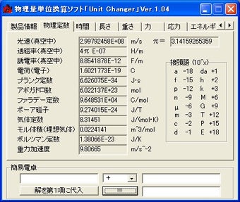 画面の下には常に簡易電卓が表示されており、計算が必要になったらいつでも利用できます。また、光速や電荷などの物理定数表も用意されています。